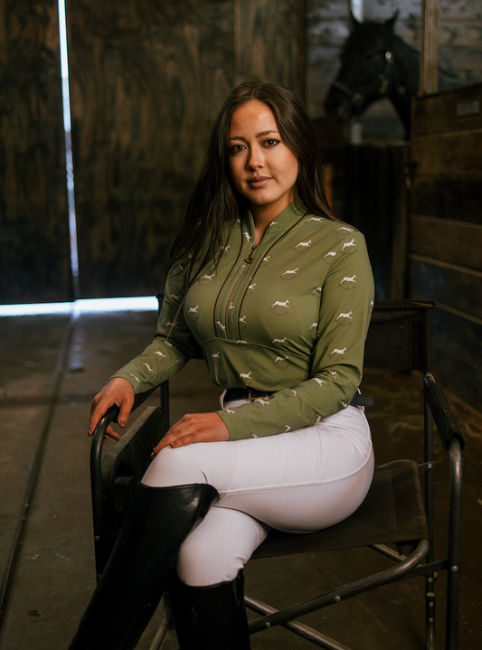 Designed with the modern equestrian in mind, our Sunshirts are made to make your ride more comfortable—no matter the season. Each piece is crafted from premium 4-way stretch fabric that moves with you, accommodating natural body fluctuations while maintaining a flattering silhouette. Moisture-wicking and breathable, they keep you cool and confident . But most importantly, every detail is thoughtfully designed to make you look and feel beautiful—because performance and elegance should always ride together.