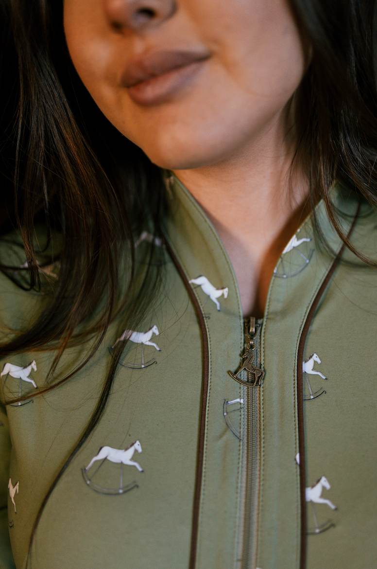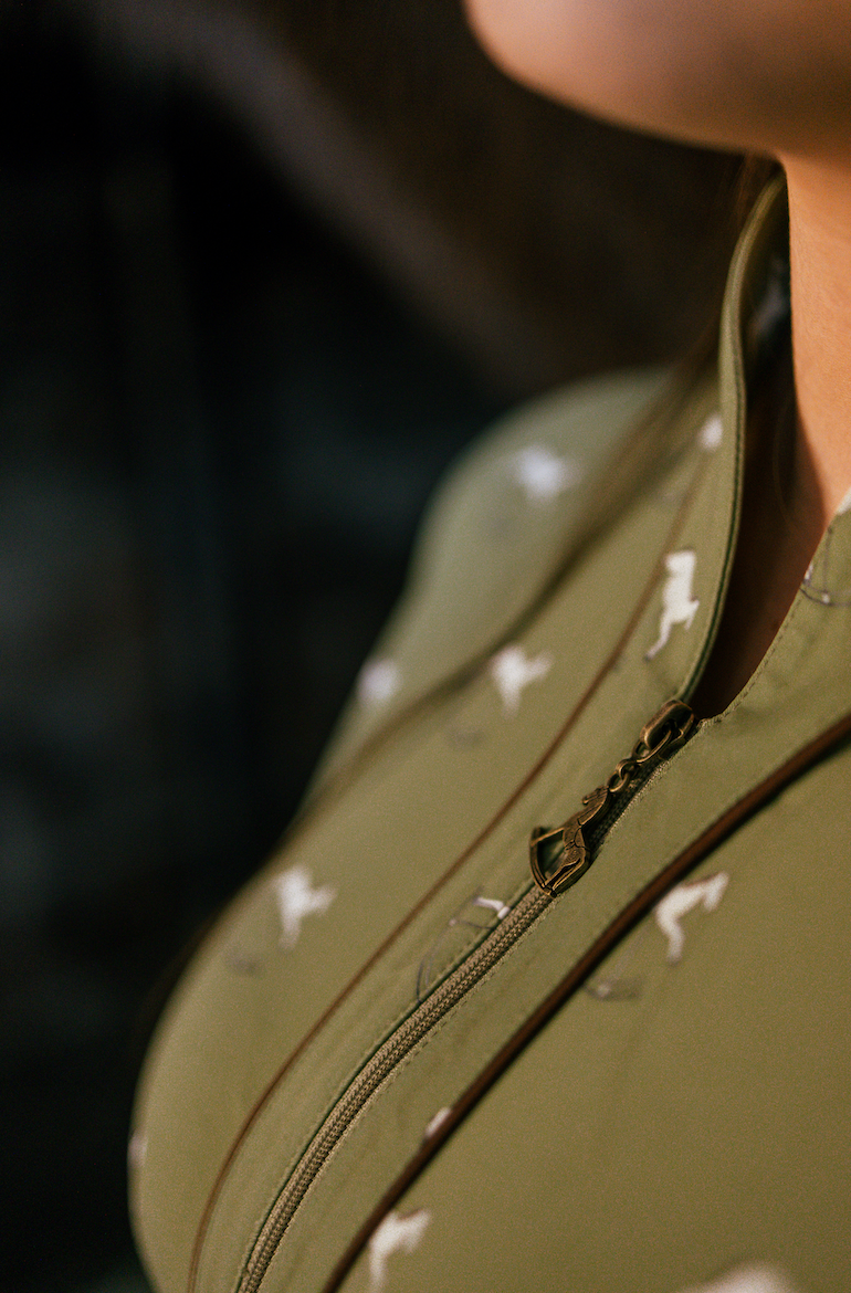 The Somerset Sunshirt offers a unique & classic look. Crafted with meticulous attention to detail. Beautiful contrast piping & exquisite bronze-inspired zipper with our rocking horse logo pull.