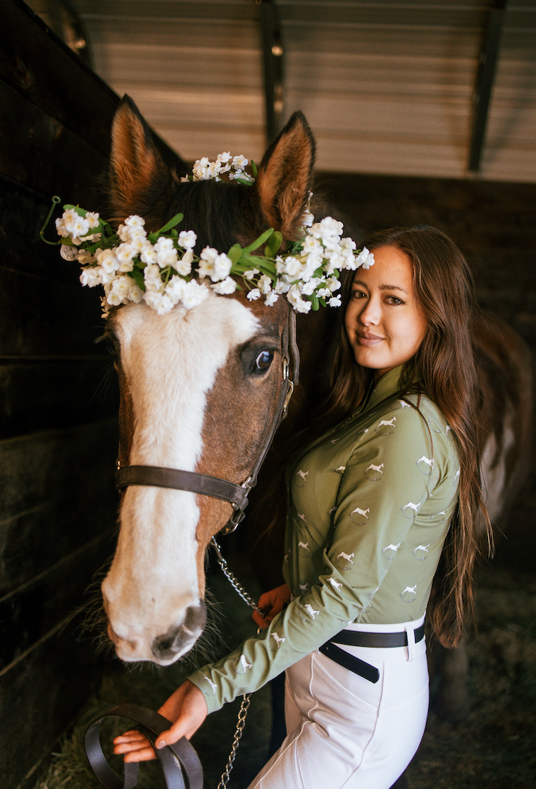 A vintage-inspired Rocking horse print made after a real vintage rocking horse we found at an antique shop. A soft delicate green named Kashmir from Pantone's 2025 Spring/Summer color trend.